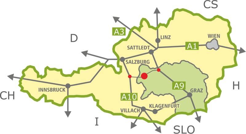 Von Salzburg-Radstadt-Schladming. Bundesstraße weiter. Nach der Tankstelle Abzweigung Richtung Lehen, Oberhaus 300 m links nach Birnberg und dann folgen Sie den Hinweisschildern bis zu unserem Hof/FORSTER.